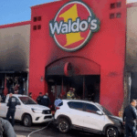 După ce incendiul a fost stins, se pot vedea urme de arsură care se ridică de pe ușile și ferestrele magazinului, una dintre ele pare complet distrusă. Mașina din fața acestei ferestre este complet arsă.