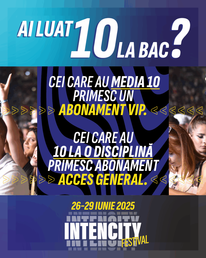 Festivalul IntenCity celebrează nu doar muzica și distracția, ci și performanța și dedicarea. În semn de apreciere față de elevii din județul Dolj care s-au remarcat prin rezultate excepționale la examenul de Bacalaureat, organizatorii oferă abonamente gratuite la festival tuturor celor care au obținut anul acesta nota 10 la una sau mai multe probe.