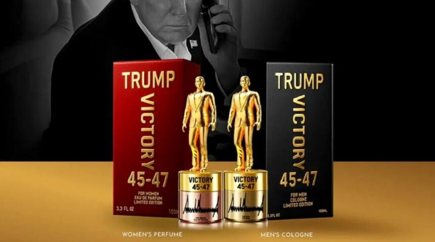 Președintele Donald Trump și-a lansat un nou parfum, care se numește „Victory 45-47” și se vinde cu 249 de dolari. Sticla îl înfățișează pe Donald Trump însuși într-o miniatură aurită. Numele vine de la mandatele obținute de Donald Trump, fiind cel de-al 45-lea și al 47-lea președinte al Statelor Unite.