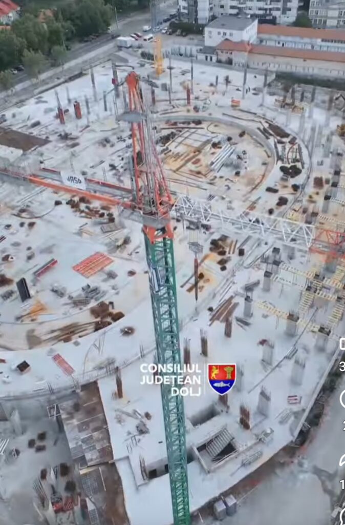„S-a turnat o parte din planșeul peste subsol. Pentru 1100 metri pătrați a fost nevoie de aproximativ 40 de betoniere și aproape 16 ore de muncă încontinuu. Viitorul complex sportiv construit de Consiliul Județean Dolj va fi cel mai modern din România, singurul cu velodrom indoor și pistă de atletism certificată pentru competiții de nivel internațional, dar și cu suprafețe de joc pentru numeroase sporturi de sală“, a anunțat Cosmin Vasile, pe Facebook.