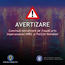 Specialiştii Directoratului Naţional de Securitate Cibernetică au descoperit mai multe pagini şi mesaje false care se folosesc de numele şi de elemente de identitate vizuală corespondente DNSC sau Poliţia Română.