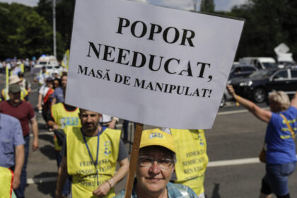 Sindicaliștii din învățământ protestează la Ministerul Educației: „Educația, prioritatea națională… la tăieri”