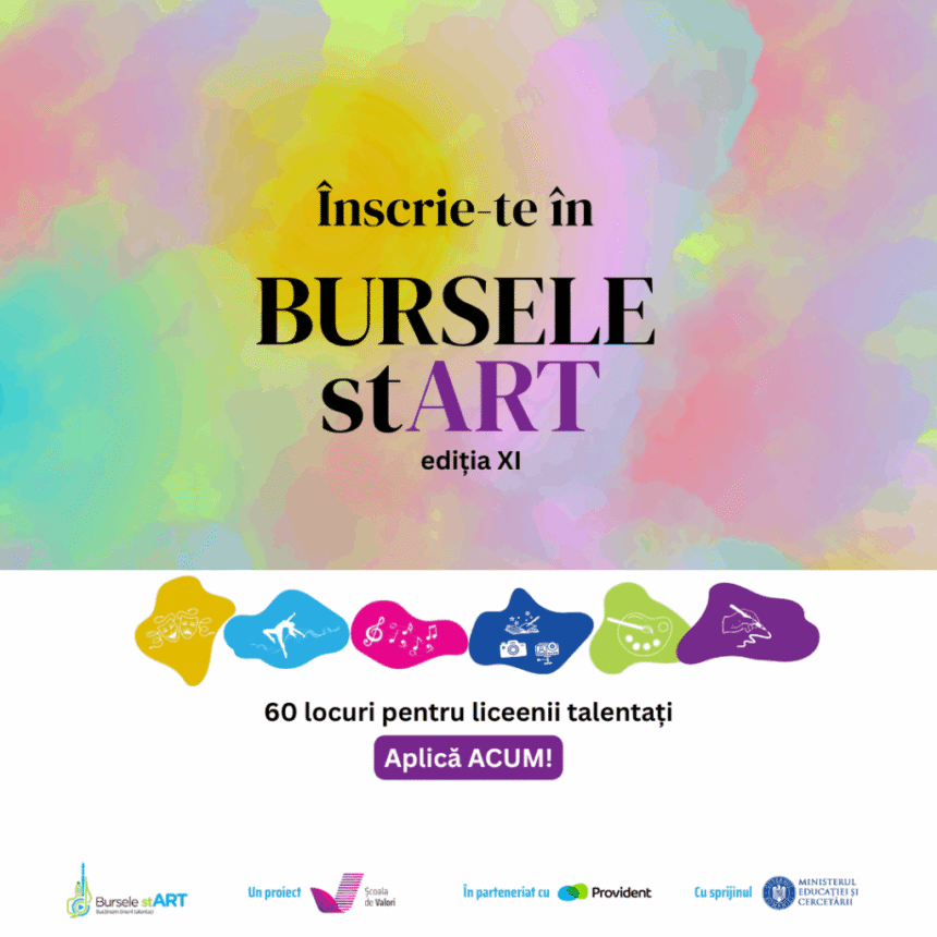 Programul oferă 60 de burse pentru elevii din clasele IX–XII, în domeniile pictură, desen, muzică, dans, teatru/actorie și artele viitorului – vlogging, scriere creativă și fotografie. Înscrierile sunt deschise până la 21 noiembrie 2025, iar regulamentul complet și condițiile de participare pot fi consultate pe site-ul oficial: scoaladevalori.ro/bursele-start.