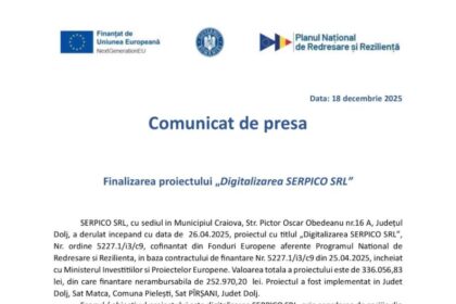 SERPICO SRL, cu sediul in Municipiul Craiova, Str. Pictor Oscar Obedeanu nr.…