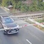 În imaginile surprinse de o cameră de supraveghere se vede cum o mașină vine cu viteză. Conducătorul autoturismului a pierdut controlul volanului, a trecut prin bariere, iar ulterior a lovit alte două mașini care așteptau să treacă trenul. Cinci persoane au fost transportate la spital în urma impactului violent.