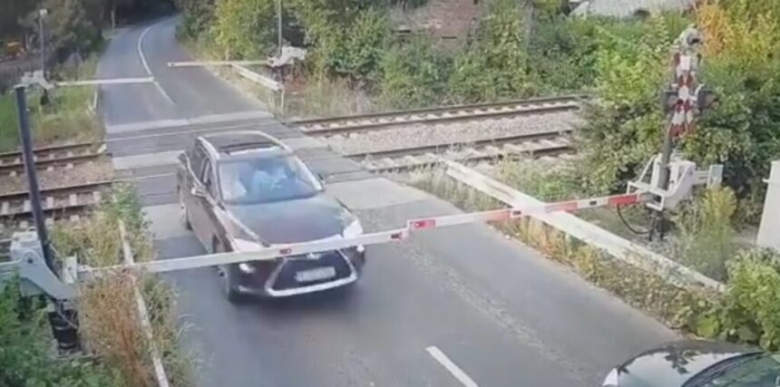 În imaginile surprinse de o cameră de supraveghere se vede cum o mașină vine cu viteză. Conducătorul autoturismului a pierdut controlul volanului, a trecut prin bariere, iar ulterior a lovit alte două mașini care așteptau să treacă trenul. Cinci persoane au fost transportate la spital în urma impactului violent.