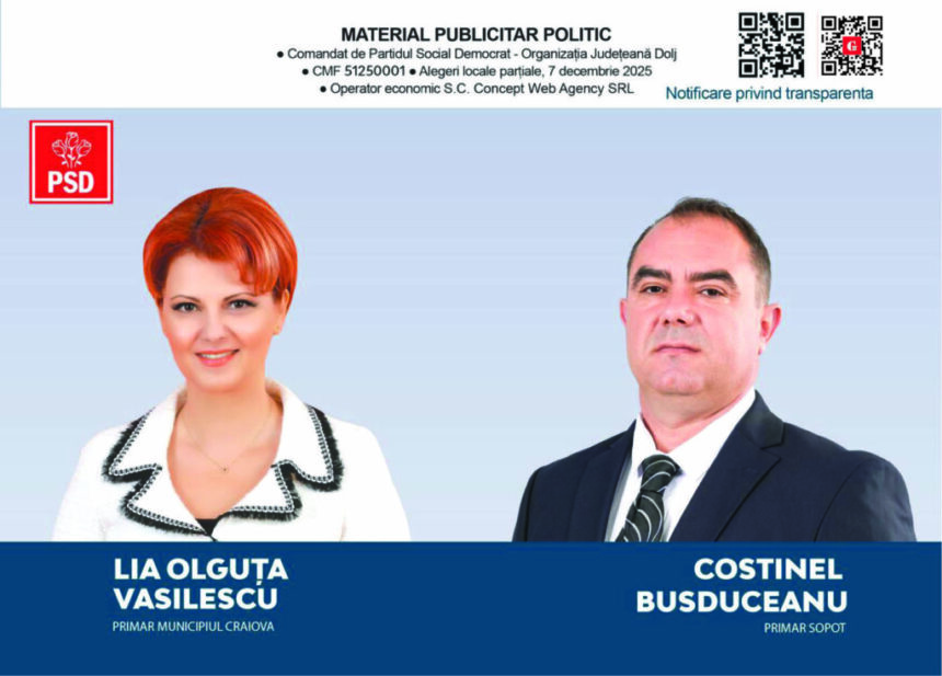 - Comandat de Partidul Social Democrat – Organizația Județeană Dolj