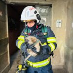 Un moment emoționant a fost surprins la fața locului, când sublocotenentul Gavrilă Mirel a evacuat din apartament un cățel, pe care l-a redat în siguranță stăpânilor.