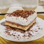 Această prăjitură cremoasa și delicioasă combină gustul fin de ciocolată, blat cu nuci, crema fină de vanilie, perfectă pentru orice ocazie.