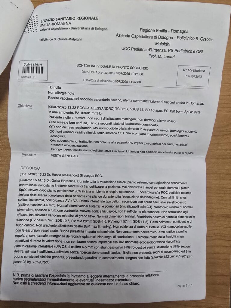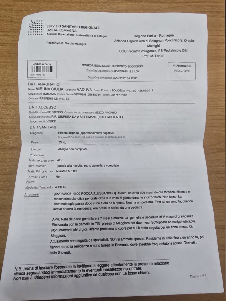 “ Aveam 43 de ani și nu aveam copii, din această cauză mi-am dorit să am un copil. Am făcut inseminare și aveam două fetițe gemene. În timpul sarcinii, una dintre fete a murit, cu greu am dus sarcina până la șapte luni ca să pot să am această fetiță. A avut probleme, a stat la incubator pentru că avea 1,2 kg. Când s-a întâmplata asta eram în Italia, unde munceam. Am stat cu fetița aproape un an prin spital. Până la un an a avut mereu probleme, își dădea ochii peste cap și leșina. O țineam numai în brațe, îmi era teamă să o las singură, să o las să facă efort, să alerge, să se joace. Ea este tot ce am. Câteodată sunt supăr și pe Dumnezeu, mi-a lăsat-o și mi-a lăsat-o bolnavă. M-am întors în țară și trăim de pe o zi pe alta, din ajutorul social și alocația ei.Vara trecută i s-a făcut rău, a învinețit, o durea în piept, amețeală, obosea repede. M-au ajutat frații să merg în Italia la spital, unde au tot istoricul ei. Mi-au spus că valva nu s-a închis și în plus i-au apărut două chisturi. I-au făcut investigații, dar pentru operație mi-au spus că trebuie să am bani, să plătesc asigurarea de 2.000 de euro. Acum a mers în școală, în clasa pregătitoare. Eu merg cu ea la ore ca să o feresc, să nu alerge, să nu cadă, să nu o lovească ceilalți copii, să nu pățească ceva că este tot ce am pe lume”,povestește Crizantina Văduva.