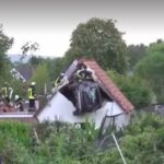 Ulterior, mașina a trecut peste un teren denivelat și, aparent, a fost catapultată în aer, izbindu-se de acoperișul unui hambar aflat la aproximativ 3 metri deasupra solului, notează Stirileprotv.