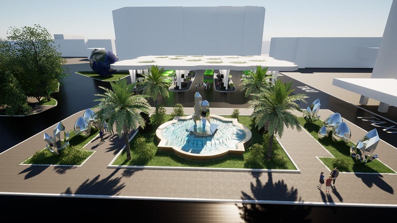 Cu alte cuvinte, zona de staționare actuală a autobuzelor va fi acoperită cu o structură metalică deschisă, îmbracată în material compozit alb. În învelitoare vor fi lăsate ochiuri libere pentru iluminarea naturala. Pentru călători vor fi realizate băncuțe din material compozit cu aspect de lemn, de tip lamelar serpuit. În partea dinspre bulevardul Dacia va fi amplasată o sferă metalică, ca un glob pământesc, pe care va fi reprezentată harta Craiovei. Fântâna arteziană va fi refăcută complet, înconjurată fiind de tot felul de elemente de decor, respectiv patru forme tip cristale, unele tip ou de rață. În zonă vor fi plantați palmieri și liane.