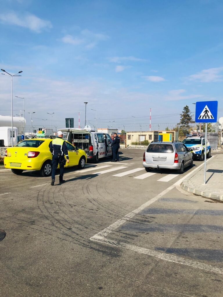 Polițiștii de la Transporturi, acțiune la Aeroportul Internațional Craiova: Amenzi și rețineri pentru taxiuri și autoturisme neconforme