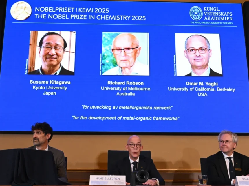 Academia Regală Suedeză de Ştiinţe a acordat Premiul Nobel pentru Chimie 2025 lui Susumu Kitagawa, Richard Robson şi Omar M. Yaghi „pentru dezvoltarea structurilor metal-organice”. Prin dezvoltarea structurilor metal-organice, laureaţii au oferit chimiştilor noi oportunităţi pentru rezolvarea unor provocări cu care ne confruntăm, potrivit Comitetului Nobel.