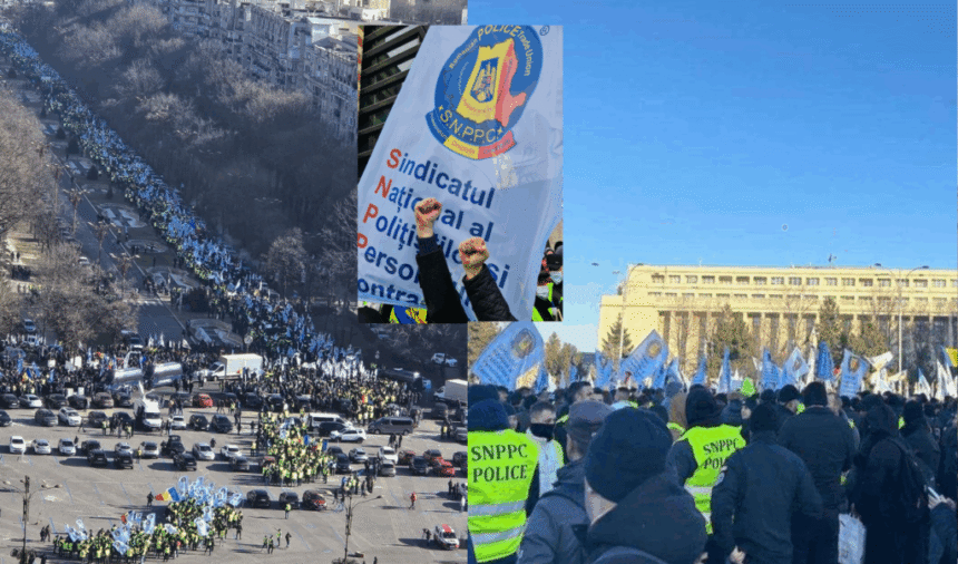Protest sindical de amploare în Piața Victoriei – revendicări majore pentru angajații MAI