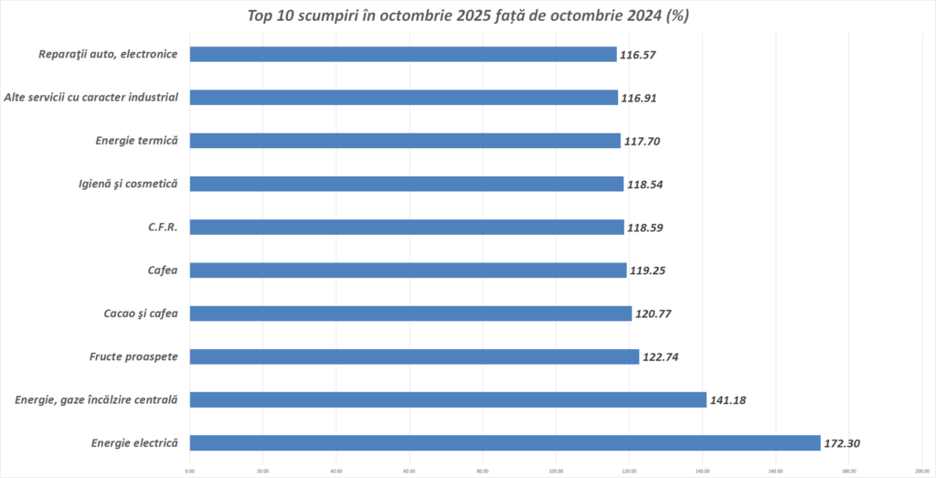 Scumpirile cele mai însemnate din octombrie continuă să fie la tariful energiei electrice