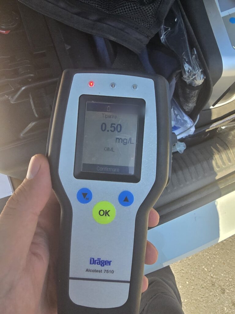 Întrucât emana halenă alcoolică, bărbatul a fost testat cu aparatul alcooltest, care a indicat o concentraţie de 0,50 mg/l alcool pur în aerul expirat.