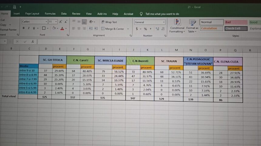 Gazeta de Sud a analizat rezultatele obținute la Evaluarea Națională de elevii principalelor școli din Craiova și a grupat datele pe calupuri de note. Desigur, cel mai mult ne-au interesat notele între 9 și 10 care definesc performanța unei școli. În urma acestei analize au rezultat următoarele: