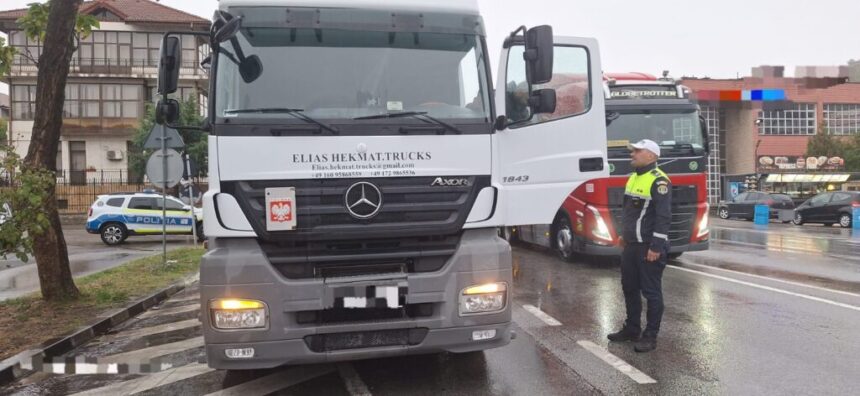Polițiștii din cadrul Poliției municipiului Orșova au oprit vineri după-amiază, pentru control, în trafic, pe DN 6, un ansamblu de vehicule condus de un bărbat, cetățean turc, de 44 de ani, care ar fi efectuat transport de mărfuri fără respectarea legislației incidente.