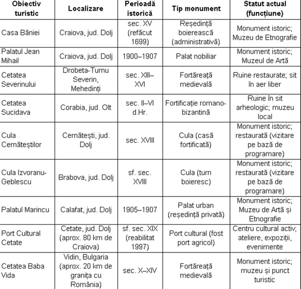 Rezumat al obiectivelor turistice din Craiova și din împrejurimi