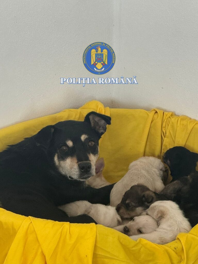 Polițiștii Biroului pentru Protecția Animalelor au preluat și încredințat, azi, unei asociații pentru protecția animalelor 8 cățeluși abandonați împreună cu mama lor.