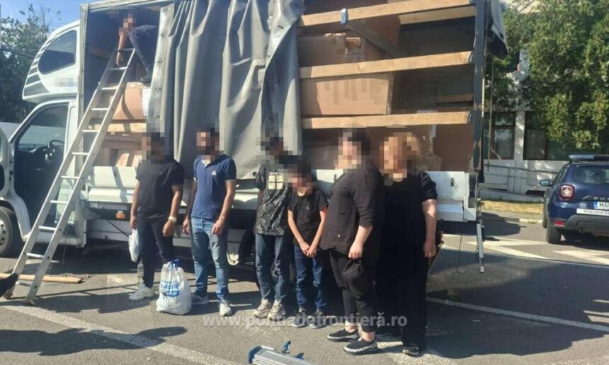 În urma efectuării controlului asupra mijlocului de transport, au fost depistate, în compartimentul destinat transportului de marfă, șase persoane, cetățeni străini, fără documente de călătorie.