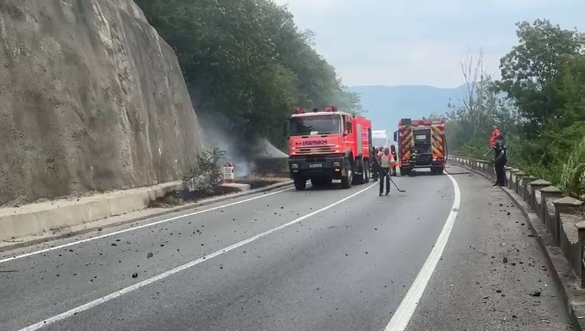 Din cauza unui incendiu de vegetaţie, traficul rutier este perturbat, marţi, pe DN 6, în zona Orşova. Potrivit drumarilor, cad pe şosea lemne aprinse şi pietre.