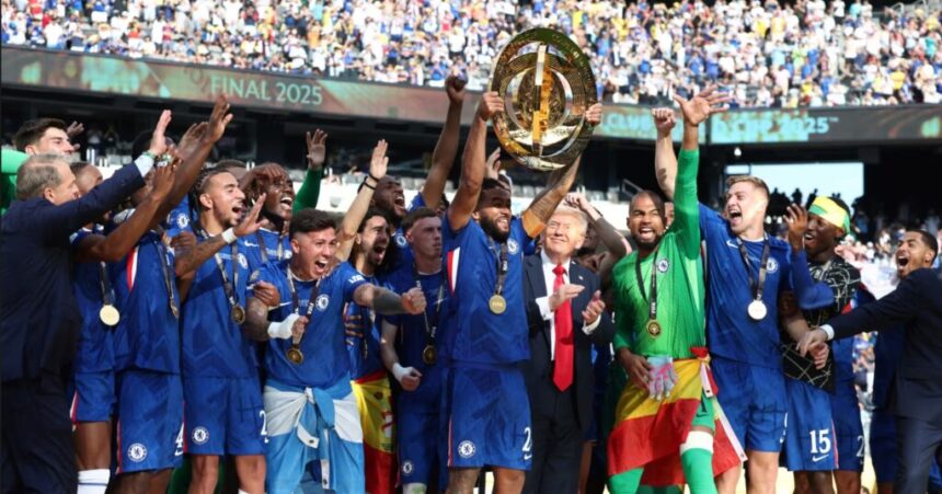 După un meci disputat în condiții toride, Chelsea, deținută de miliardarul american Todd Boehly, a ridicat trofeul mondial, potrivit The Guardian. Dar momentul culminant nu a fost oferit de echipa câștigătoare, ci de imaginea lui Trump, rămas în centrul scenei în timp ce căpitanul Reece James sărbătorea cu colegii.