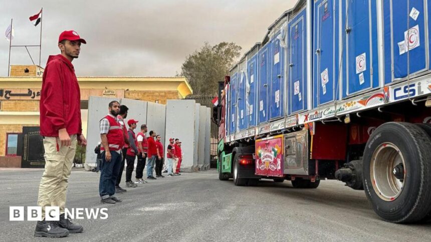 Zeci de camioane cu ajutoare au început să intre în Gaza în această dimineață, cozi lungi fiind vizibile la punctul de trecere Rafah, la granița cu Egiptul. Această livrare face parte din planul de încetare a focului dintre Israel și Hamas, intrat în vigoare vineri, care prevede creșterea cantității de ajutoare umanitare ce pot fi introduse în enclava palestiniană.
